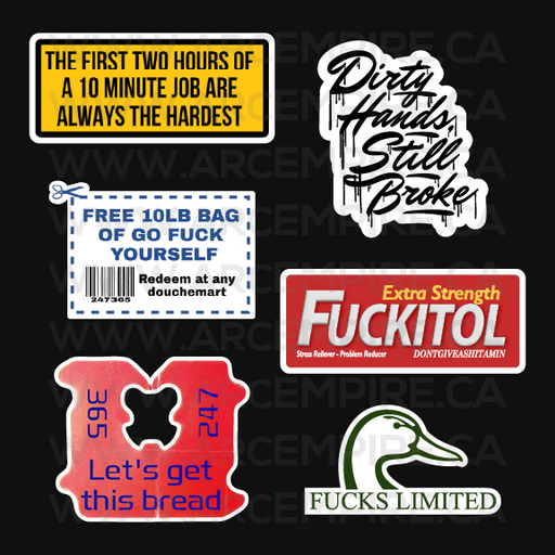 View full details3" Sticker Bundle The Every Shift’s a Shitshow Sticker Bundle is built for tradespeople who’ve seen enough nonsense to laugh through the day. Six s...